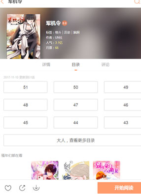 简介:《军机令》漫画简述:这是一个战火纷飞内忧外患的时代,随着统治、集权进一步的强化,为了能够铲除威胁皇权的隐患,皇帝秘密设置了一个鲜为人知的暗杀机构。这个机构执行各项暗杀任务,行动诡谲隐秘,刺杀手法千变万化,是皇帝手下的得力助手,因为这个机构过于恐怖,所以朝野上下无不对其名号讳莫如深,而他们的名字,就是...